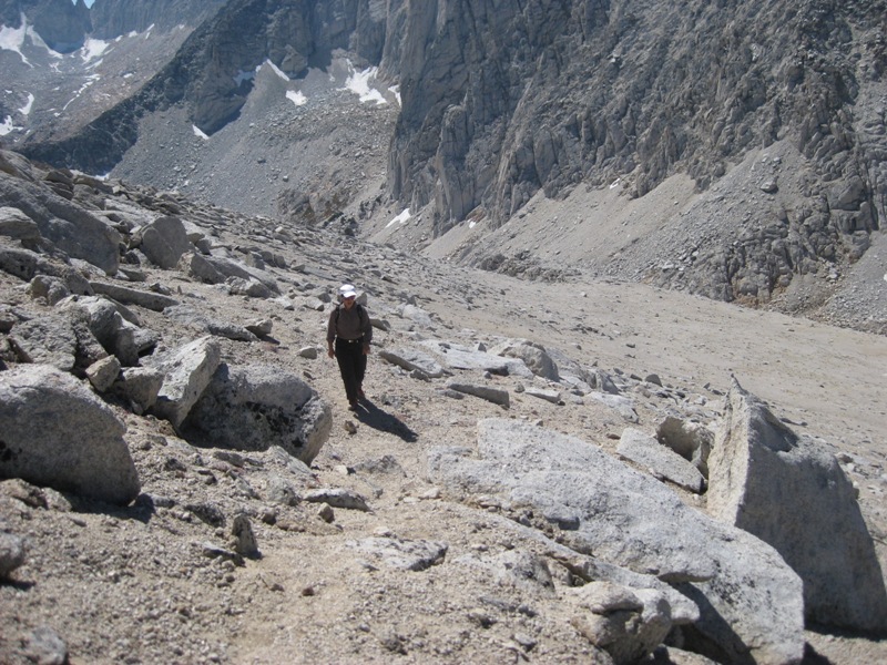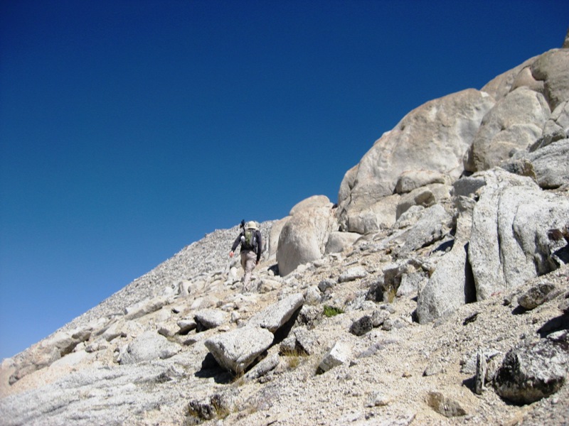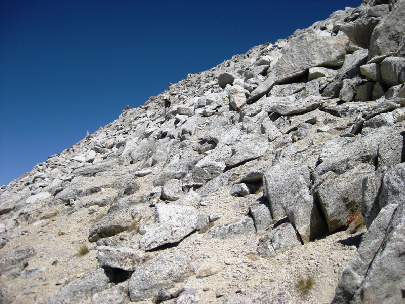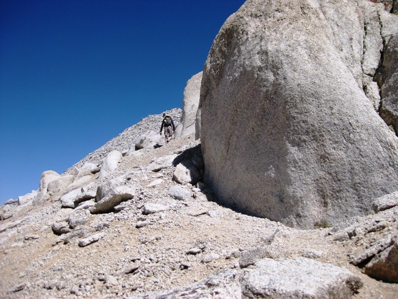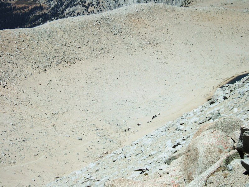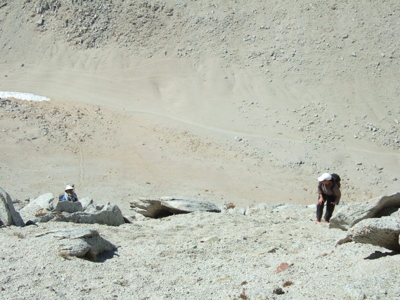 Frank expects, we'll make it about half way. | And the Abyss stares back into Stella. | Bill attacks the climb. |  |  | Bill picks his way quickly among the boulders. | Stella and Frank follow rather more slowly. | For perspective:  that is a mule train down there. |  | Stella is on the steepest part of the ascent while Frank watches. |  |  | Made it.  Stella can rest now, | while Frank chooses to spider over the rocks. | Okay, back into the sand. |  | Stella presses onward. |  |  | And upward. |  |  | Ever upward. |  |
