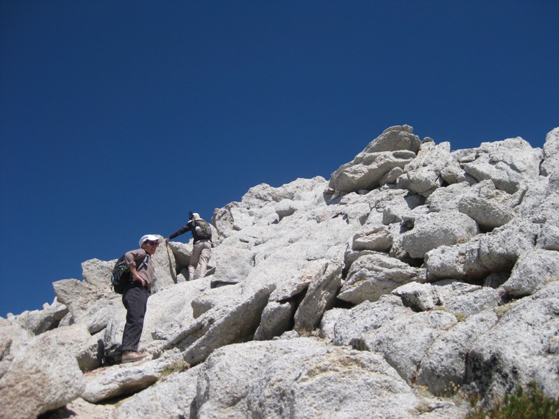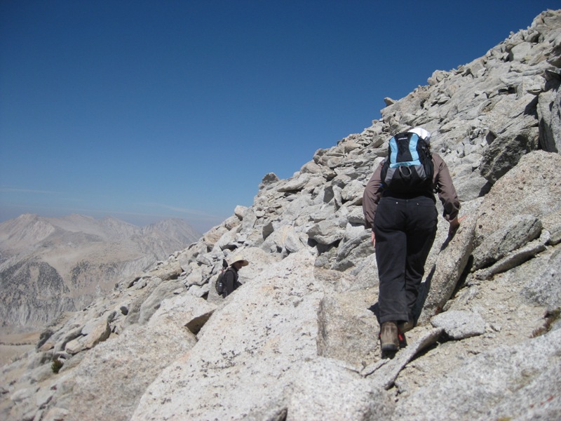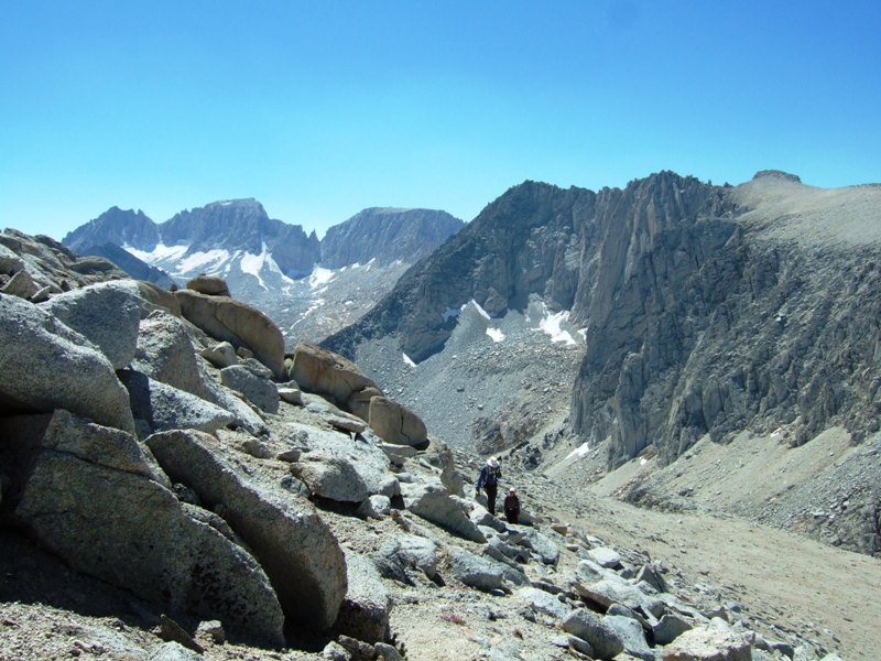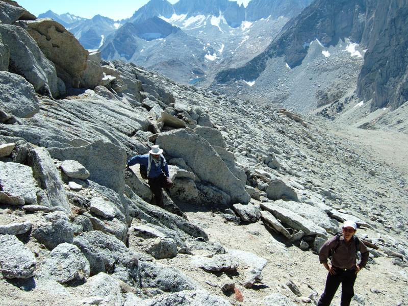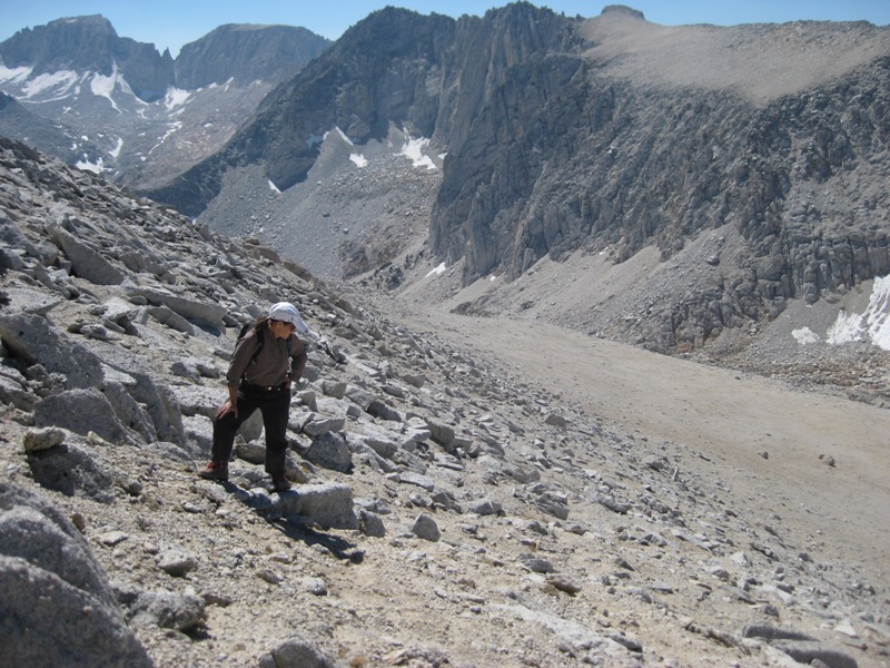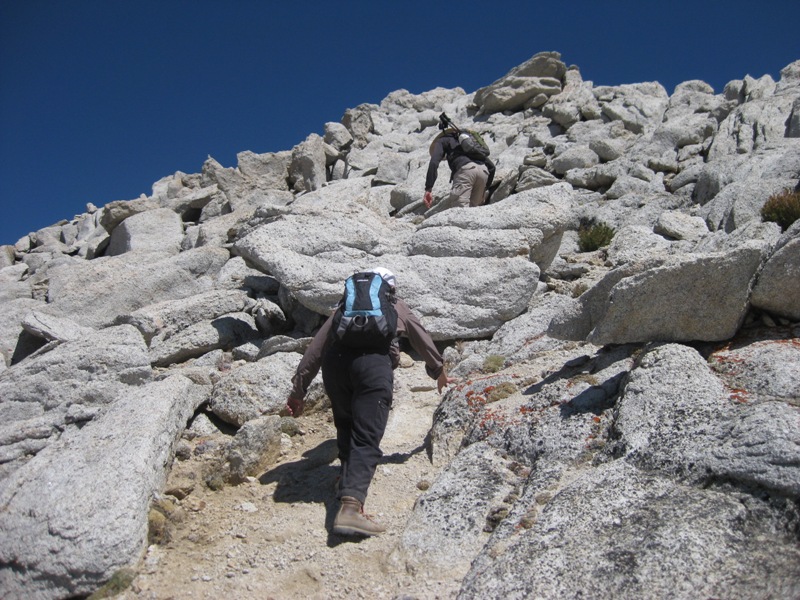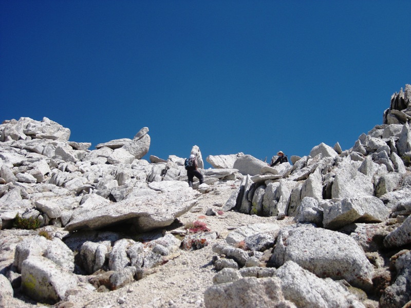 Frank expects, we'll make it about half way. | And the Abyss stares back into Stella. | Bill attacks the climb. |  |  | Bill picks his way quickly among the boulders. | Stella and Frank follow rather more slowly. | For perspective:  that is a mule train down there. |  | Stella is on the steepest part of the ascent while Frank watches. |  |  | Made it.  Stella can rest now, | while Frank chooses to spider over the rocks. | Okay, back into the sand. |  | Stella presses onward. |  |  | And upward. |  |  | Ever upward. |  |