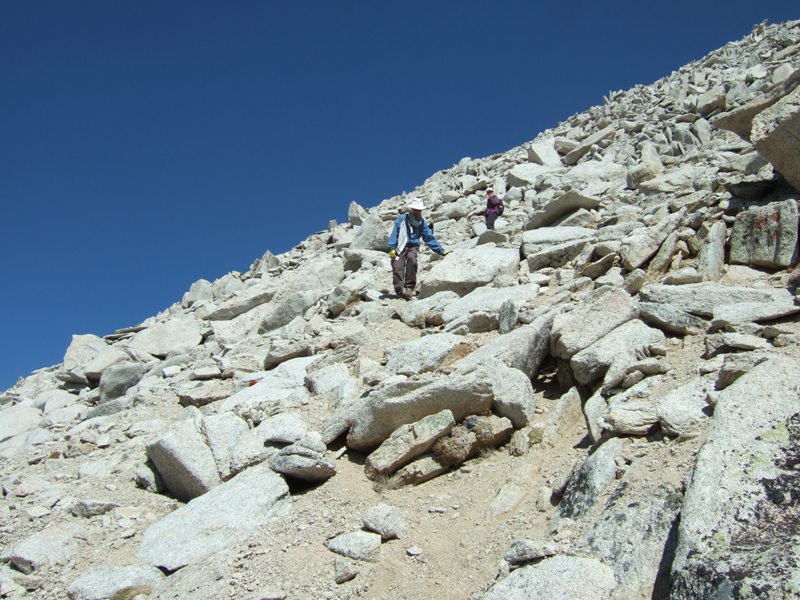 We regain Stella. | And begin a steep descent. | The three of us take turns, moving only if nobody is in a line below us, lest we