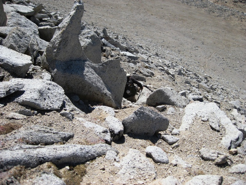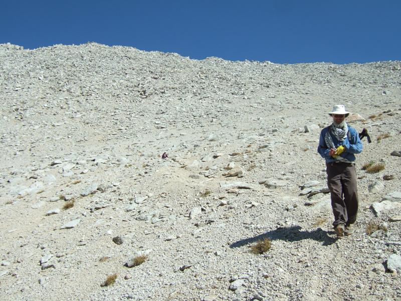 | | Frank reaches the easier part, and cleans gravel out of his gloves. |