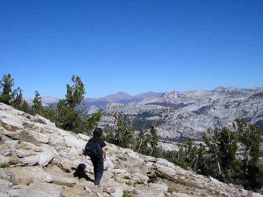 The wind whistles and howls. The view is astounding. (As we rest, senior citizens hike up and down past us with hiking poles).