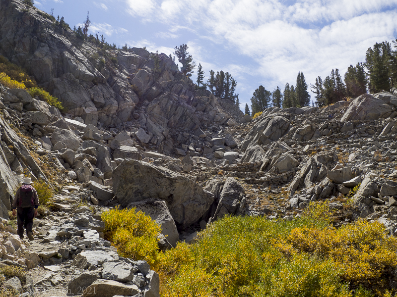 Then begins a long, rocky climb, pretty much to the end. This is a trail with a lot of stairs, but is often interrupted. -F.