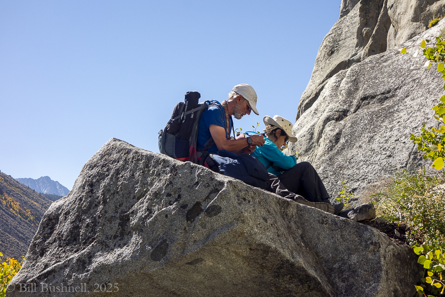 After a long steep climb on a trail through talus, often losing the way (it probably took less than half an hour) we arrive at Gong Show.
