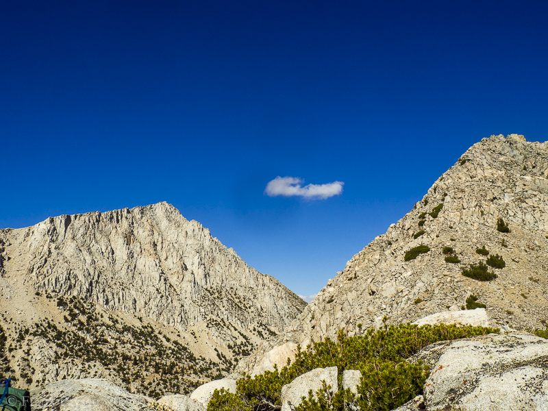 Starr on the left, Lookout on the right. Last time after lunch, we decided there was nothing to lose in giving it a try. I went first and what looked really hard from below turned out to be pretty easy once on it! It's a pretty easy scramble with a couple of class 3 moves, and I remember it being fun. Too late for today, though. -F.