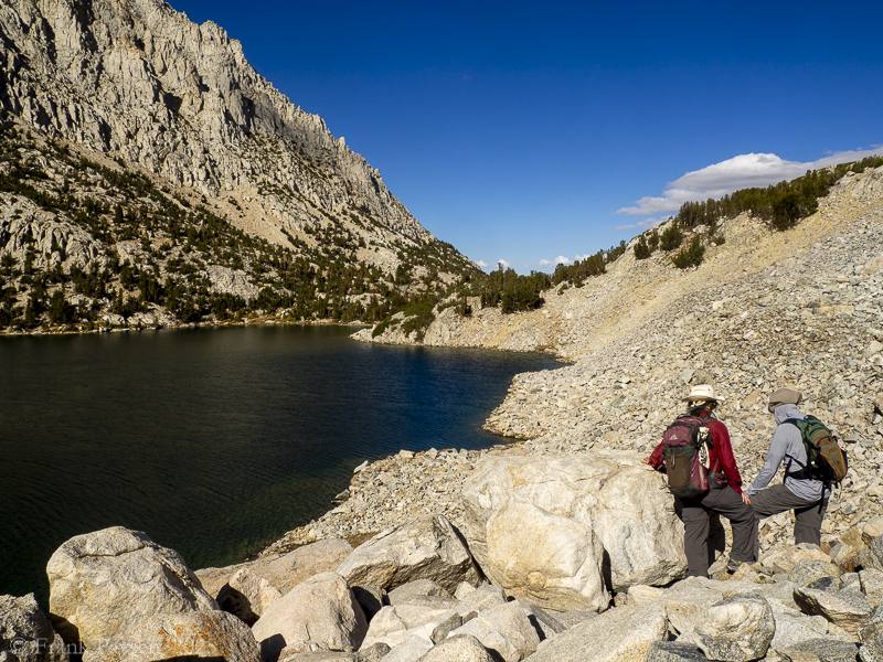 On the way down, Stella falls twice amid the talus. Once her foot was caught and she twisted an ankle. After a pause she was able to continue. Though only a mild sprain, it's been bothering her since. -F.
