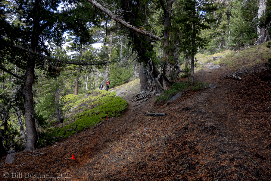 But instead he said, trail is open! Even one of the trails at this junction that the website has listed as closed had no signs of closure. Still, there were the orange flags. -F.