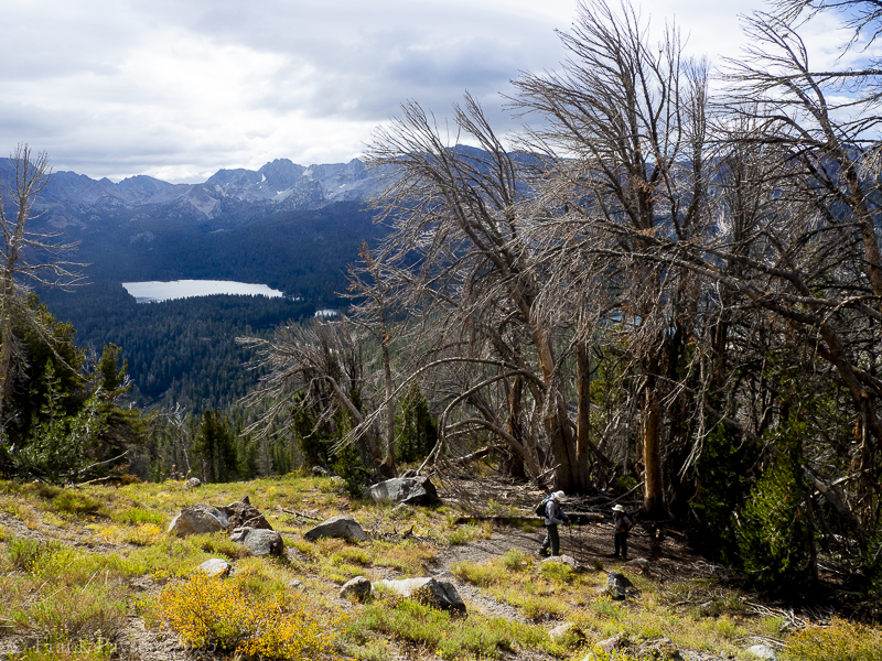 Just then, three runners with numbers came storming down the trail, greeted us, answered Bill's question--yes, there was an event on, a race--and then disappeared downhill along the orange flags. Now things made sense. I started on up the trail, watching for oncoming runners. -F.